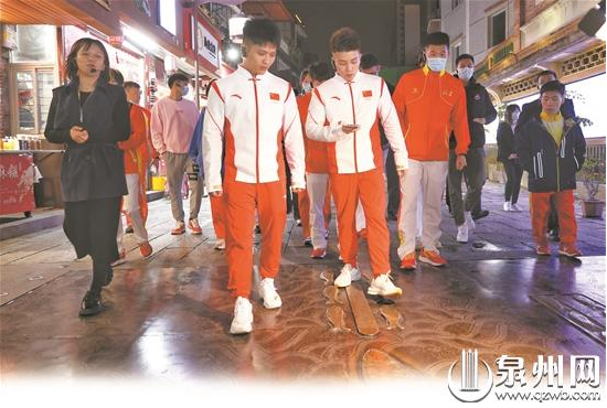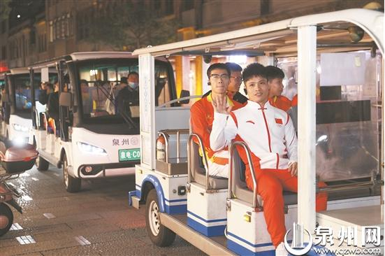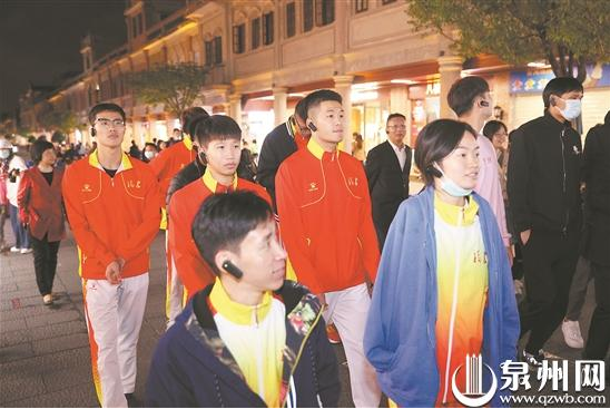 22日晚,雨后的泉州古城更添几分清丽。一群身着运动服的咱厝运动健儿从远方归来,沿着古城缓缓前行,一路引得过往市民连连驻足惊叹:“电视上的冠军来了!”