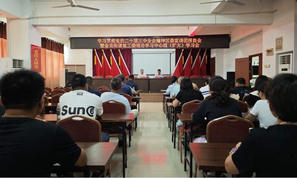 在金龙街道,区委宣讲团成员、区委史志室主任范志华作宣讲报告。报告会上,范志华从认识召开党的二十届三中全会的重要性,深入学习领会习近平总书记在全会上的重要讲话精神,全面准确理解《决定》提出的进一步全面深化改革重大举措,全力以赴抓好全会精神贯彻落实等四个方面,紧密结合街道工作实际,对全会精神作了深入宣讲阐释。与会党员干部表示,宣讲报告政治站位高、主题鲜明,联系基层实际,深入浅出、内容丰富,对全面、完整、准确理解和把握党的二十届三中全会精神具有重要的指导意义。