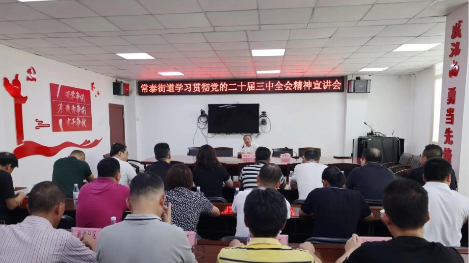 在常泰街道,区委宣讲团成员、区司法局党组书记庄国强作宣讲报告。庄国强围绕全会的主题和重大意义,结合常泰街道实际工作,对全会精神进行了全面、系统、深刻的阐释和解读。参加报告会的党员干部表示,宣讲会主题鲜明、内容丰富,例证鲜活生动,为深刻学习领会和准确把握党的二十届三中全会精神、街道如何进一步贯彻落实全会精神提供了思路和举措。