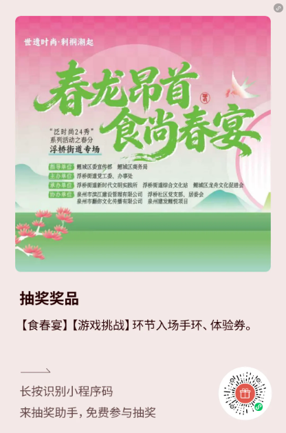 本次浮桥街道春分节气秀是鲤城“泛时尚廿四秀系列”活动之一,以浮桥本地特色农产品为核心商品,锚定石笋古渡特色场景打造专属视觉标识,串联节气×世遗×时尚×产业×消费全链路,践行“一节一礼品”目标,为游客打造多元消费体验!