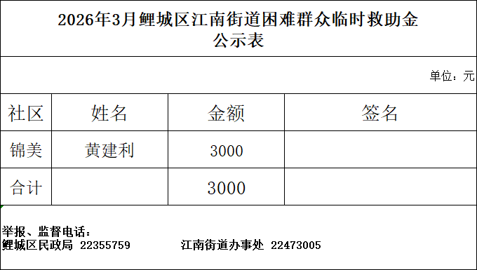 江南街道2025年3月困难居民临时救助金发放