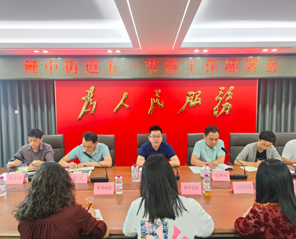 4月30日,鲤中街道召开“五一”节前工作部署会,街道部分领导班子成员、各社区主干参加会议,街道党工委书记戴隽翔主持会议并作强调讲话。