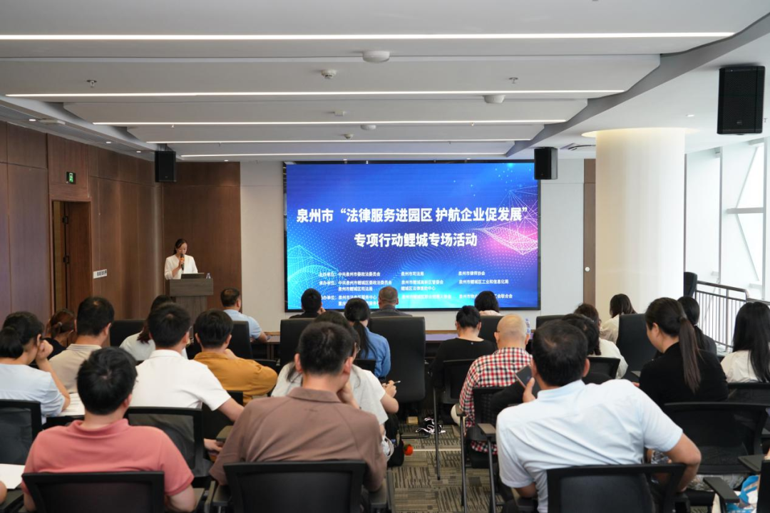 为深入贯彻落实习近平总书记对福建工作的重要讲话重要指示批示精神,传承弘扬、创新发展 “晋江经验”,深化海丝中央法务区泉州片区建设,助力高水平对外开放,精准匹配园区企业多层次、多元化法治需求,4月21日下午,泉州市“法律服务进园区 护航企业促发展” 专项行动鲤城专场活动在鲤城区科创中心圆满举办。本次活动由泉州市委政法委、市司法局、市律师协会主办,鲤城区委政法委、鲤城高新区管委会、区工业和信息化局、区司法局等 5个部门承办,泉州市法务区服务中心等4个部门协办,50余名企业代表参加。