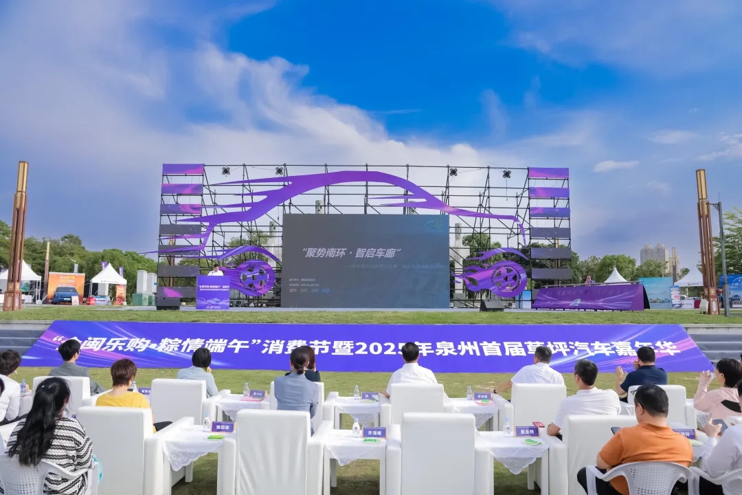 5月23日,“全闽乐购?粽情端午消费节暨2025年泉州首届草坪汽车嘉年华”在笋江公园正式启幕。福建省商务厅副厅长杭东、泉州市商务局局长张小红、鲤城区政协主席苏培聪、鲤城区人民政府副区长李超端、泉州市商务局副局长唐芳浩、福建省商务厅市场处三级调研员蔡雅景、中国农业银行股份有限公司福建省分行信用卡部总经理李剑镔、宁德时代客户支持总监潘华宏出席活动。