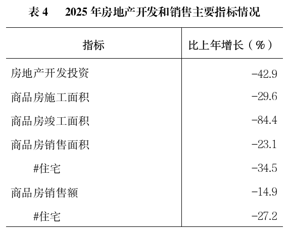 全区商品房施工面积下降29.6%。商品房销售面积下降23.1%,其中住宅下降34.5%。商品房销售额下降14.9%。