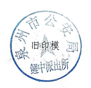 因原“泉州市公安局鲤中派出所”木质印章使用年限久,印章损坏,根据《福建省人民政府办公厅贯彻国务院关于国家行政机关和企事业单位社会团体印章管理规定的通知》(闽政办〔2000〕64号)精神,重新刻制“泉州市公安局鲤中派出所”铜质印章壹枚。决定自发文之日起启用该印章,原“泉州市公安局鲤中派出所”印章同时废止。