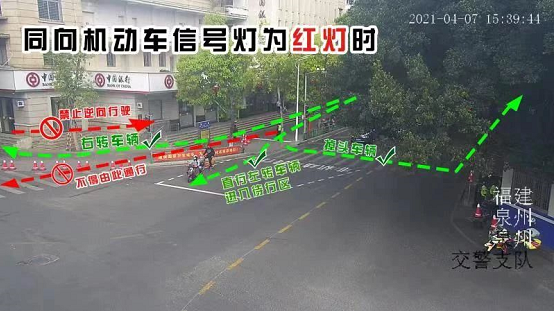 “以前,非机动车是跟随人行横道信号灯从斑马线通行,由于老城区非机动车道空间有限,大量等待通行的非机动车挤占了机动车道,造成拥堵。正常转向的机动车和正在通过马路的非机动车之间也存在交通冲突,加上非机动车逆向行驶等违法多发,严重影响了路口的通行秩序和通行安全。”鲤城交警大队民警告诉记者,施划非机动车待行区后,非机动车可参照同向机动车信号灯行驶。当路口机动车信号灯为红灯时,非机动车可直接驶入待行区等候通行;当路口机动车信号灯为绿灯时,待行区内的非机动车便可通行,未驶入待行区的非机动车应在非机动车道停止线前等候,等待下一次信号灯转换时再进入待行区。需要注意的是,右转的非机动车可以直接右转。