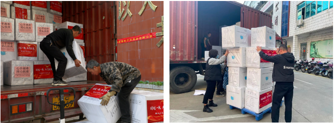 今天下午4点30分,在福建福瑞斯户外用品有限公司,工作人员们正忙着把一箱箱防疫物资装运到集装箱里。“乡谊永固 齐心抗疫”“坚定信心 战胜疫情”……每个箱子上都贴着暖心标语,凝聚着对居港鲤城乡亲的关怀与祝福。