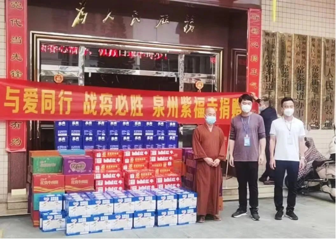 3月15日,泉州通淮关岳庙通过鲤城区红十字会向鲤城捐赠新冠疫情防控款项500万元,以及一批价值10万元的疫情防控物资。在关岳庙的示范引领下,辖区各宗教场所纷纷行动起来,宿燕寺、紫福寺、接官亭、慕西寺、浮桥基督教堂、北门土地公宫等共捐资近18万元,共同助力疫情防控。