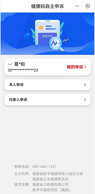 进入健康码自主申诉入口,在此页面可选择“本人申诉”,并可在“我的申诉”里查看历史申诉记录。