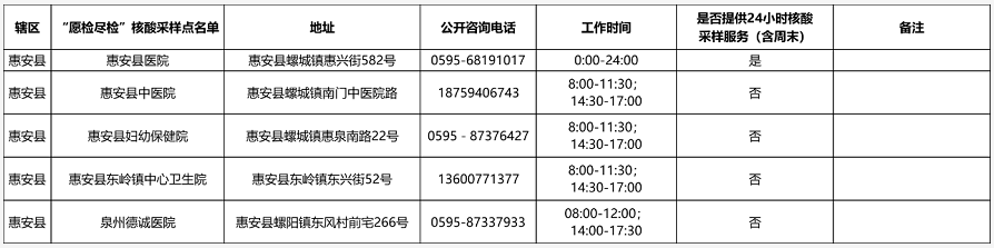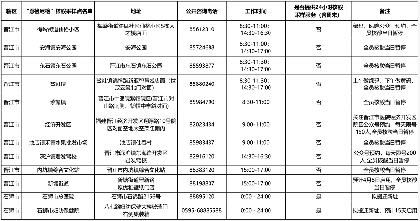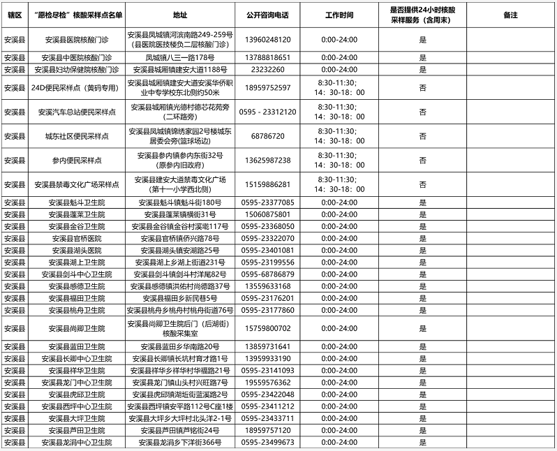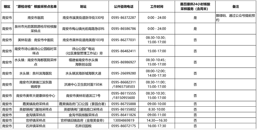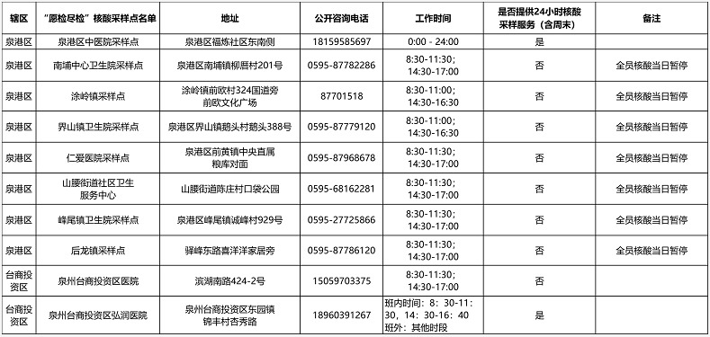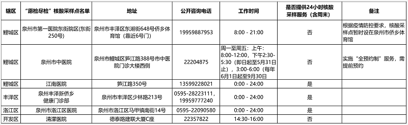 为更好地服务企业复工复产,有序恢复社会生产生活秩序,满足群众48小时内的核酸检测证明需要,泉州市卫健委公布114家“愿检尽检”核酸采样检测机构名单,方便群众选择就近的采样点进行核酸检测。