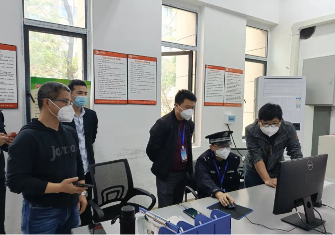 张晓强(左一)查看观察点监控情况