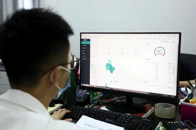 工作人员通过“全国中小企业融资综合信用服务平台”查看鲤城企业相关信息