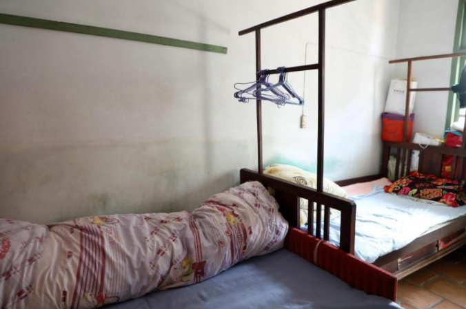 老蔡一家人挤在老旧宿舍里,家中陈设简陋