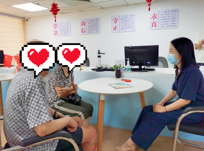 7月12日,区司法局工作人员为老蔡夫妇耐心解读公证书条款