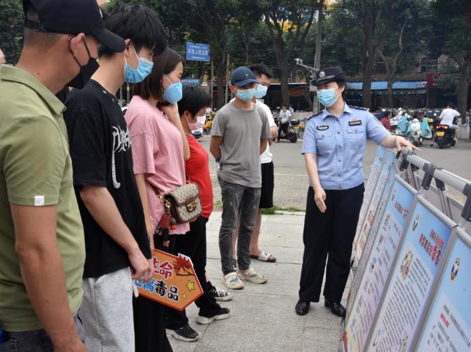 民警、志愿者向居民宣传禁毒知识(资料图)