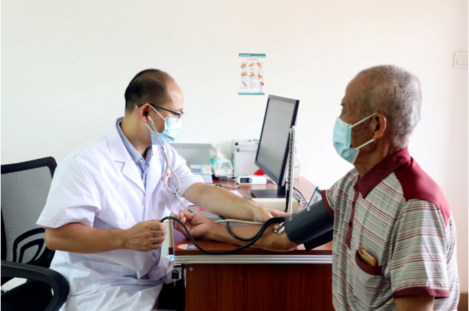 8月2日上午九点半,位于金龙街道龙岭社区的医务室内,来自鲤城江南医院的医生正忙着为社区老人量血压、测血糖。一个月前,社区里的老人们还在为下山看病苦恼,如今,在家门口就能看病取药,大家直呼:太便利了!