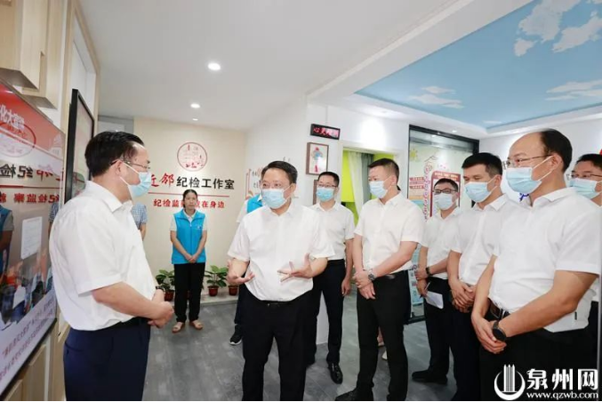 省委常委、市委书记刘建洋抵鲤城区临江街道侨光片区近邻纪检工作室,调研“纪检监察进邻里”工作。(陈英杰摄)