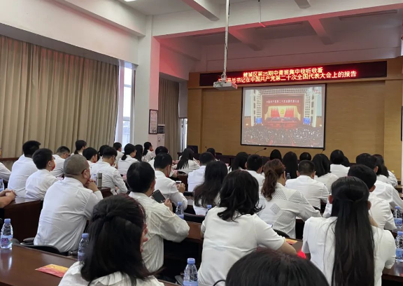 上午10时,区委党校会议室内座无虚席,大家围坐在一起,共同观看直播。党的二十大报告中,提出了一系列重要论断,引发强烈反响。作为党校教研人员,区委党校副校长苏文奕表示,“我们将认真开展集体备课,读懂弄通、学深悟透党的二十大精神,将其融入教材教案,并深入基层开展巡回宣讲,全面掀起学习宣传贯彻党的二十大精神热潮。”