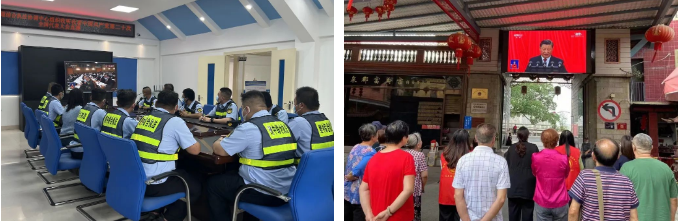 临江街道居民群众通过户外大屏收听收看开幕会(右)