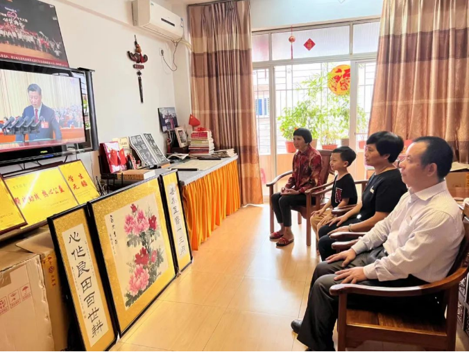 泉州市文明家庭、鲤城区道德模范史玉阳一家收听收看开幕会