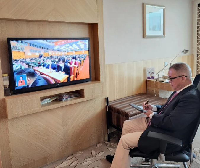 鲤籍港胞、全国政协委员刘与量一边观看直播,一边认真做笔记,他表示,“祖国始终是香港的坚强后盾。我将继续团结香港各界,支持和配合特区政府依法施政,为保持香港长期繁荣稳定、加快融入国家发展大局而不懈努力。”