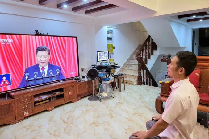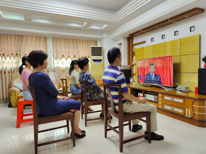 虽然是在家观看直播,归国留学人员、福建中新澳教育科技集团有限公司董事长刘辉农还是特意换上了衬衫,他说,“作为一名留学归国人员,我真切地感受到祖国的强大、国际地位和人民生活水平的提升,所以我们必须坚决拥护中国共产党的领导,听党话、跟党走。”