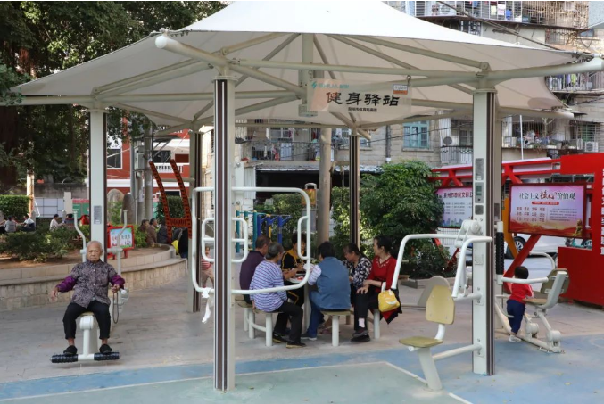 金山社区小公园是社区老年人日常“打卡”之地,这里安装了不少智能健身器材,大家在这里健身、运动、休闲,小公园也成了居民口中的“健康公园”。这里还有一座“健康小屋”,是社区打造的居家养老健康服务点,依托海滨街道社区卫生服务中心、金山社区卫生服务站、吴家春诊所、国大药店、康佰家大药房等医疗资源,组织开展义诊、赠药等服务,为老年人提供优质医疗服务。