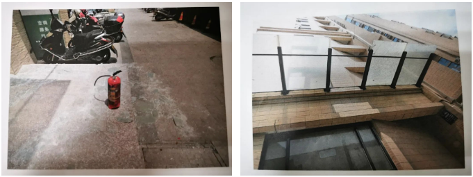 案涉灭火器和破裂的挡雨玻璃