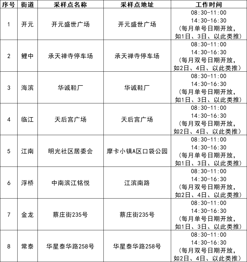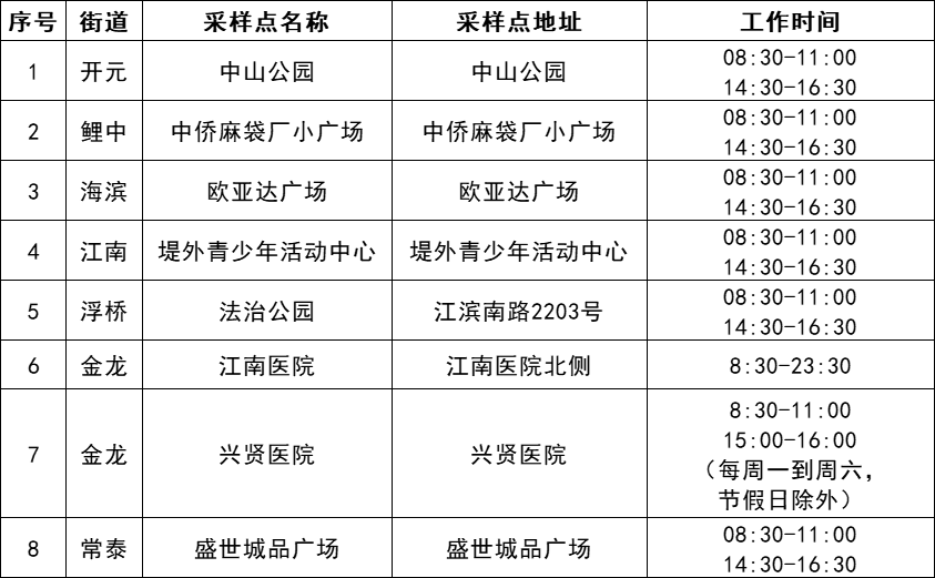 备注:江南医院采样点环境消杀时间为11:40-13:00;16:30-17:50,请勿跑空!