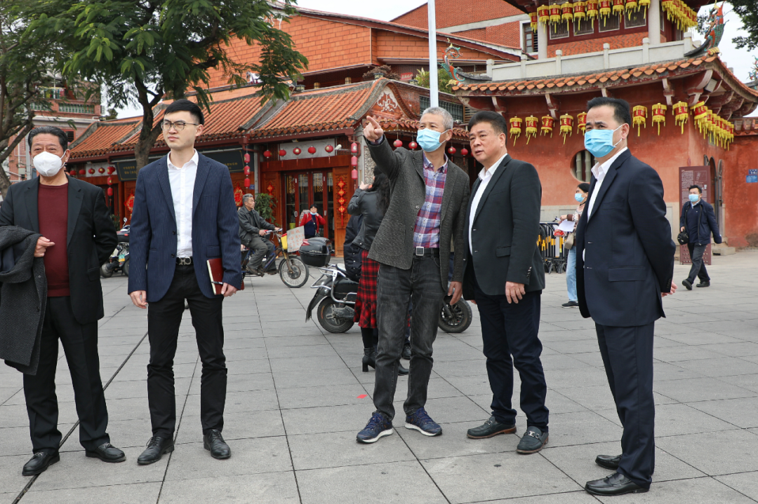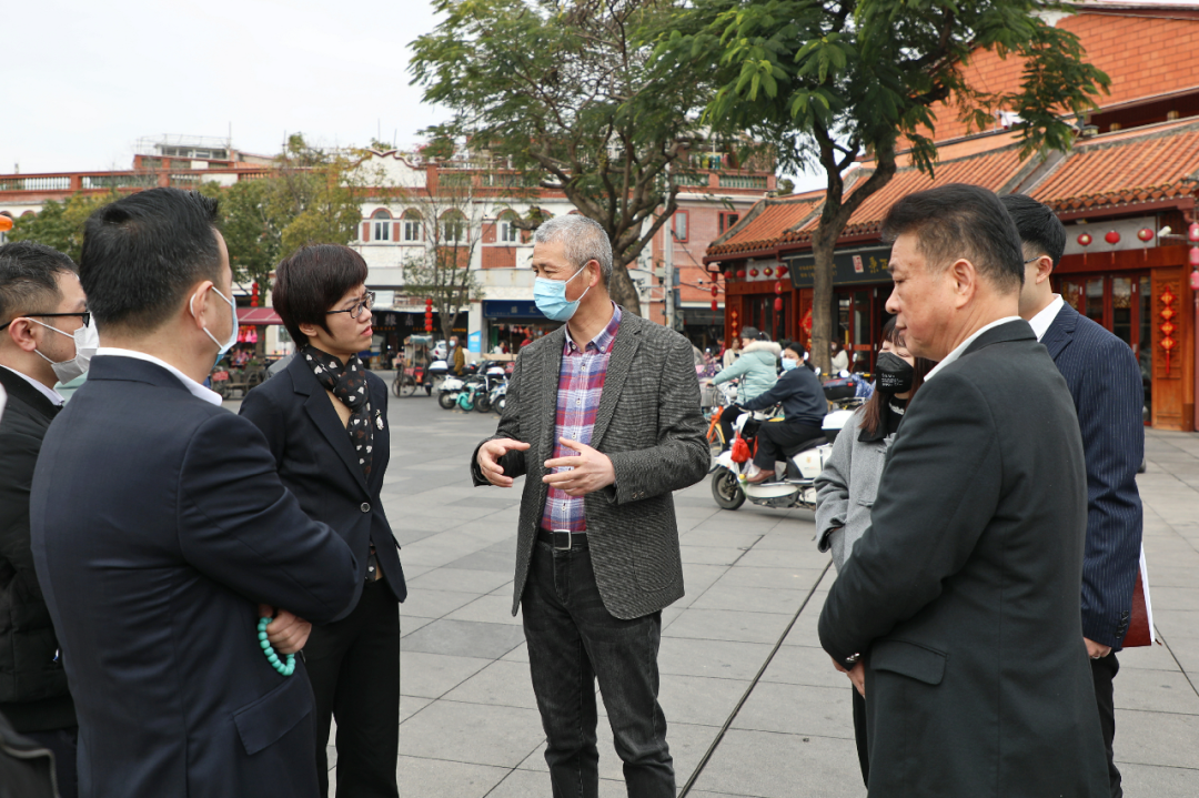 郑锦山一行边走边看,实地调研中山南路的文旅业态、景观风貌、综合管理等情况,切身感受古城深厚文化底蕴,体验街区蓬勃发展活力。在中山南路138号原中国银行旧址、天后宫、德济门遗址、372号刘胜裕总行等处,郑锦山一行驻足停留,详细察看周边环境,深入了解相关情况,就斯里兰卡馆选址规划的可行性、价值性和可控性展开研究讨论,提出意见和建议。