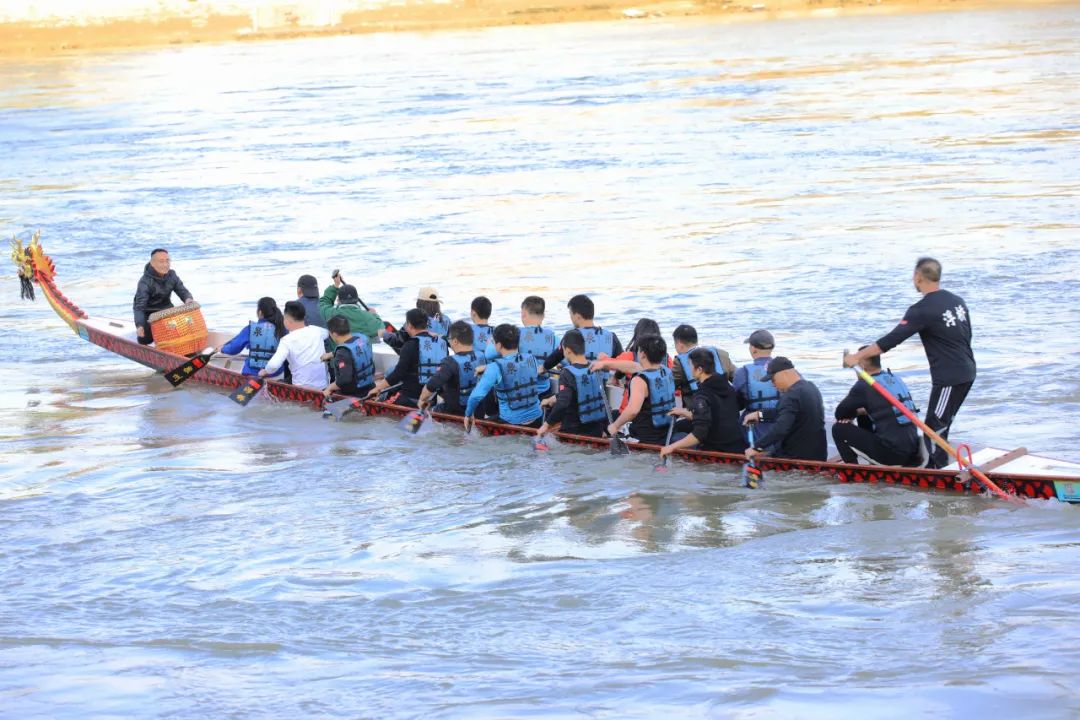 岸边的群众被现场气氛所感染,纷纷为他们加油助威,吆喝声和呐喊声回荡在笋江畔。