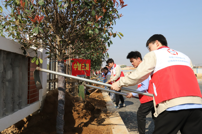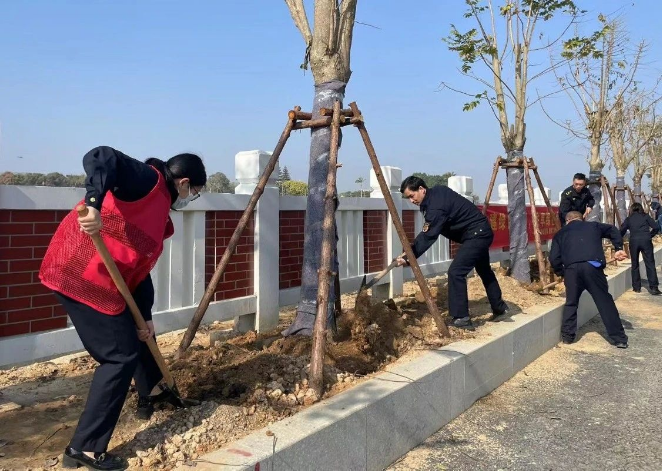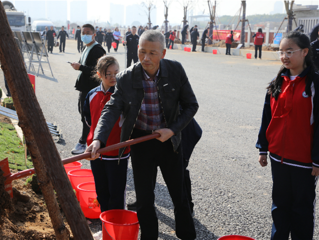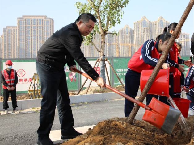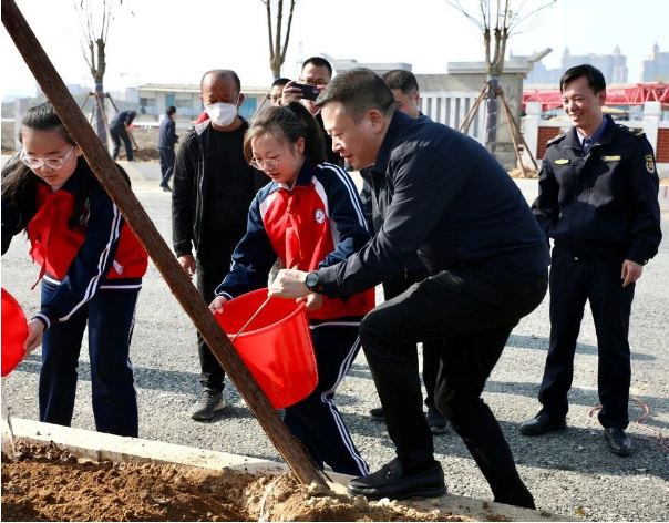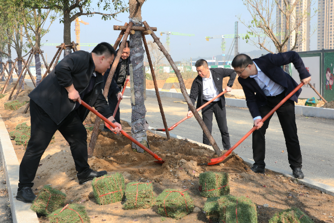 在繁荣大道第四施工段,大家三五成组、分工协作,撸起袖子加油干,区领导一边忙着植树,一边不时询问植树面积、树木存活率、后期管护等情况。挥锹、扶苗、培土、浇灌……在众人的共同努力下,200株绿植不到1个小时就种植完毕,它们昂然挺立、错落有致,在和煦的春风中焕发出勃勃生机。