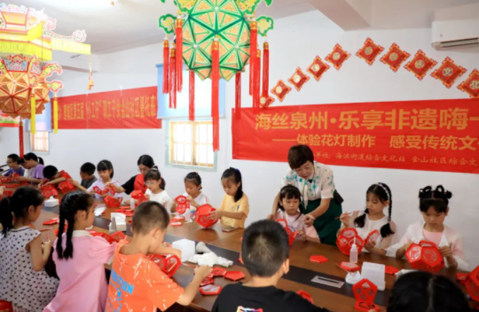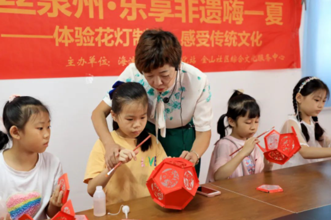 “小朋友们,今天我们一起来学习如何制作刻纸无骨小花灯!”在陈丽玲花灯刻纸研学基地,金山社区“小工仔”暑托班的30名学生迎来了一堂别开生面的非遗课,在市级非遗传承人、泉州花灯代表性传承人陈丽玲的悉心指导下,孩子们一步步完成花灯制作,切身领略非遗文化的魅力。