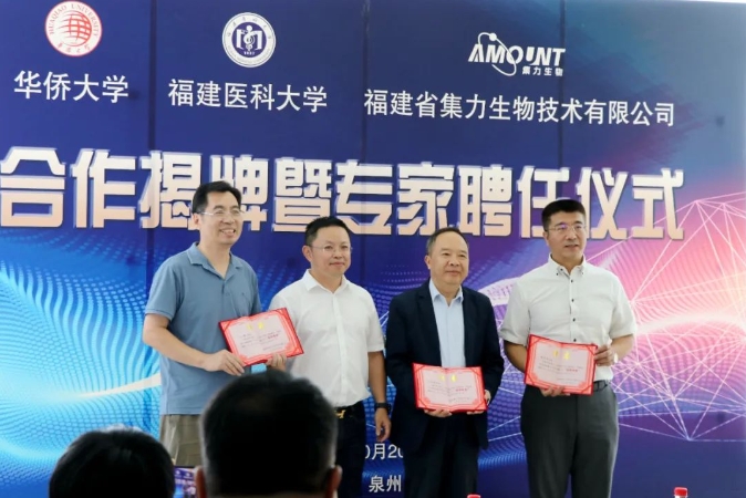 当天,现场还举行专家聘任仪式,华侨大学医学院院长刁勇、福建医科大学转化医学研究院副院长刘合焜、福建医科大学第二附属医院中心实验室主任高宏志获聘为集力生物指导专家,他们将通过产学互补、资源共享,为企业提供专业技术支持,帮助企业解决更多难题,践行校企合作双向赋能,助推更多科技成果落地转化。