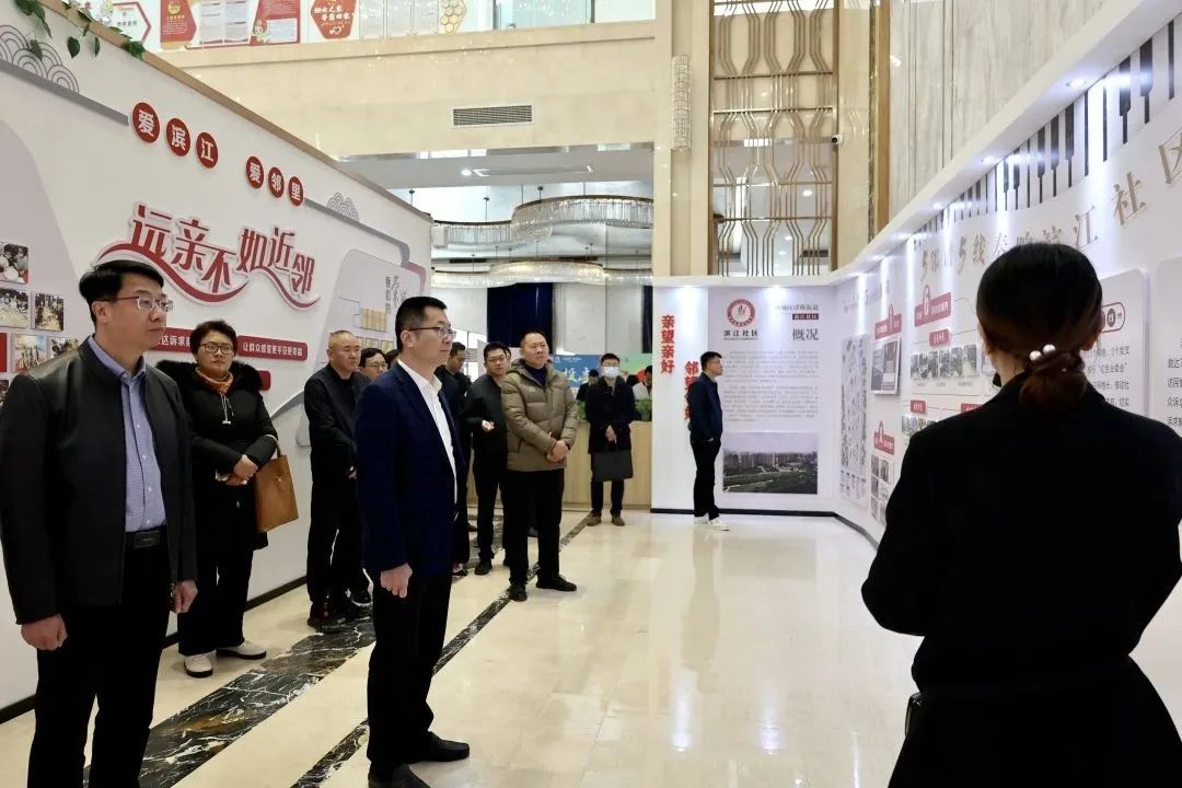 在浮桥街道滨江社区,与会人员现场参观基层小微权力监督平台建设情况,社区工作人员介绍运用平台开展工作的典型案例和相关情况。