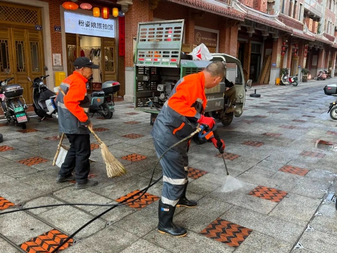 值得一提的是,刺桐鲤市政大力推行机械化与人工协同作业,其中,主干道采用机械化清扫为主、人工辅助的作业模式,每小时清扫面积从3000平方米提升至4200平方米;背街小巷则采用人工清扫为主、小型电动清运车为辅的作业模式,并结合便民上门收垃圾服务,由环卫工人定时驾驶垃圾车巡逻,确保垃圾“日产日清”。自该服务推行以来,累计服务居民超5000人次,古城街巷垃圾满溢现象减少75%,居民群众满意度达到85%以上。