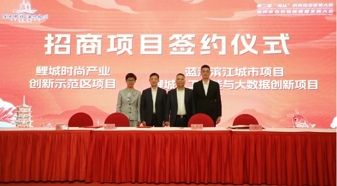 会上,鲤城举行重点招商项目签约仪式。蓝海滨江城市购物中心项目、鲤城人工智能与大数据创新项目、鲤城时尚产业创新示范区项目、響霖创艺产业园项目、泉州文旅创新投资基金项目、新之星娱乐直播基地及跨境电商产业园项目等6个项目现场完成签约,总投资62亿元,涉及人工智能、文化娱乐、商业购物、产业园建设等多个领域。