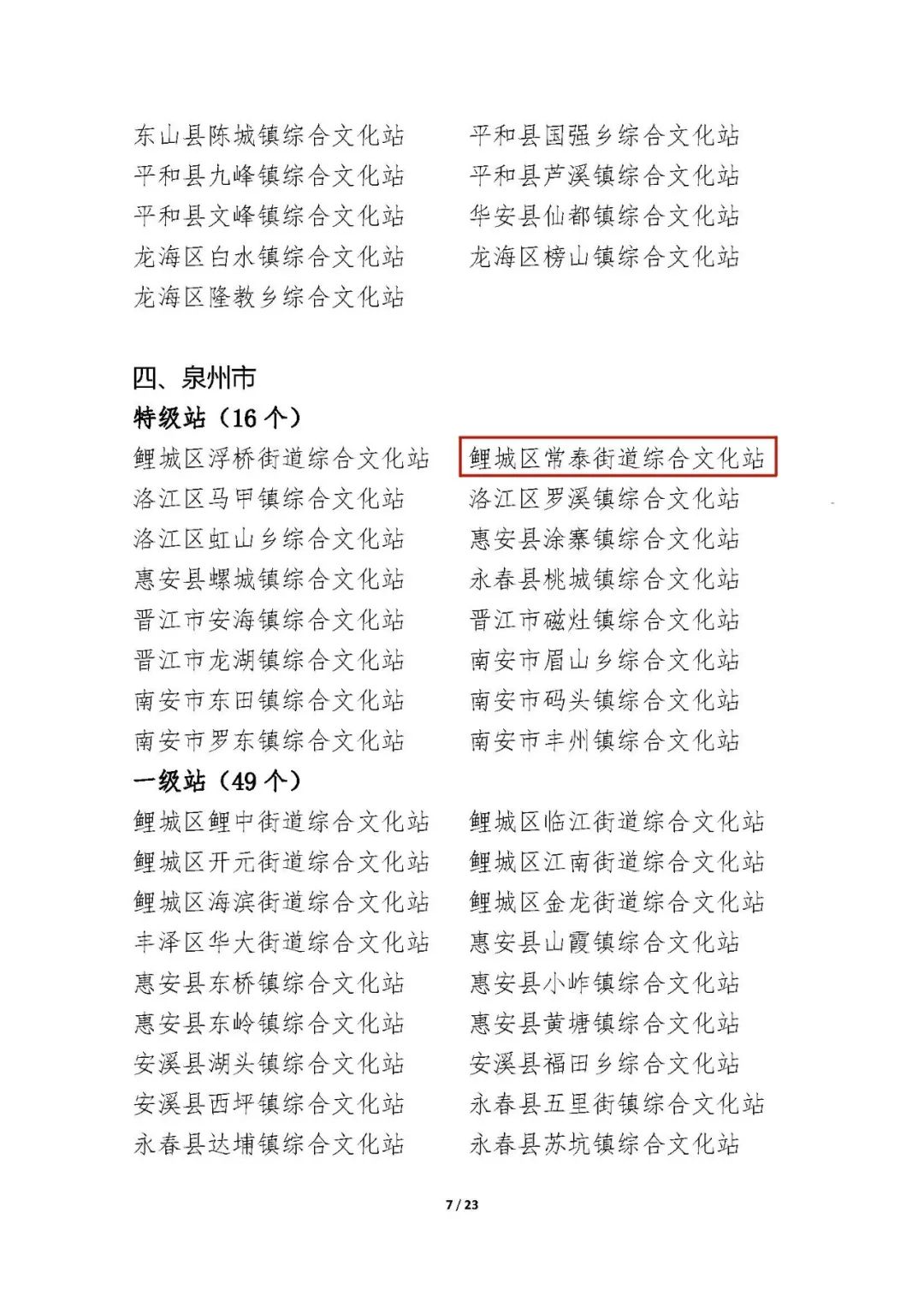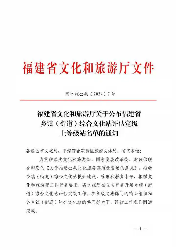 福建省文化和旅游厅关于公布福建省乡镇(街道)综合文化站评估定级上等级站名单的通知