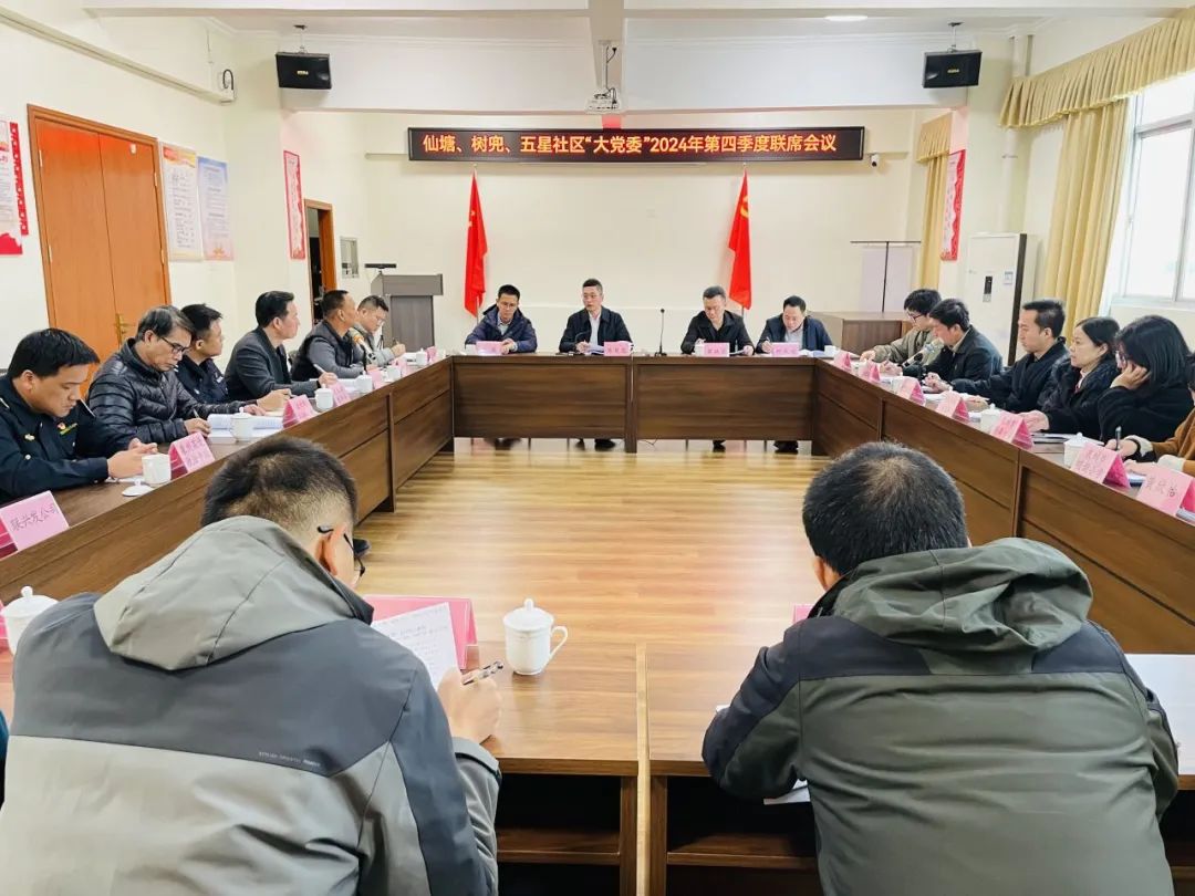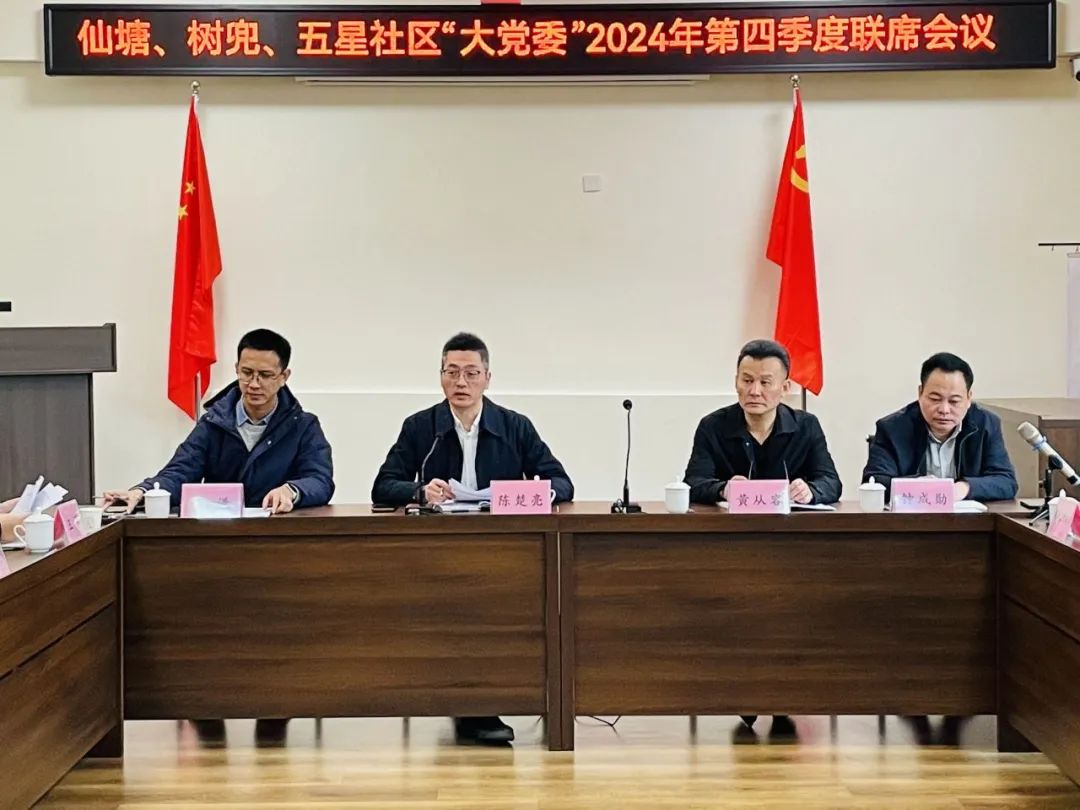 为深入贯彻习近平总书记关于“持续提升党建引领基层治理效能”的重要指示精神,进一步推动物业管理提升专项行动等近期各项中心工作任务落地见效,12月19日,常泰街道仙塘社区、树兜社区、五星社区召开2024年第四季度“大党委”联席会议。区委常委、统战部部长,仙塘、树兜、五星社区“大党委”书记陈楚亮主持会议并做强调讲话。街道挂点班子成员,区城市管理局、江南城建集团、高新区管委会相关负责同志,仙塘、树兜、五星社区“大党委”委员参加会议。