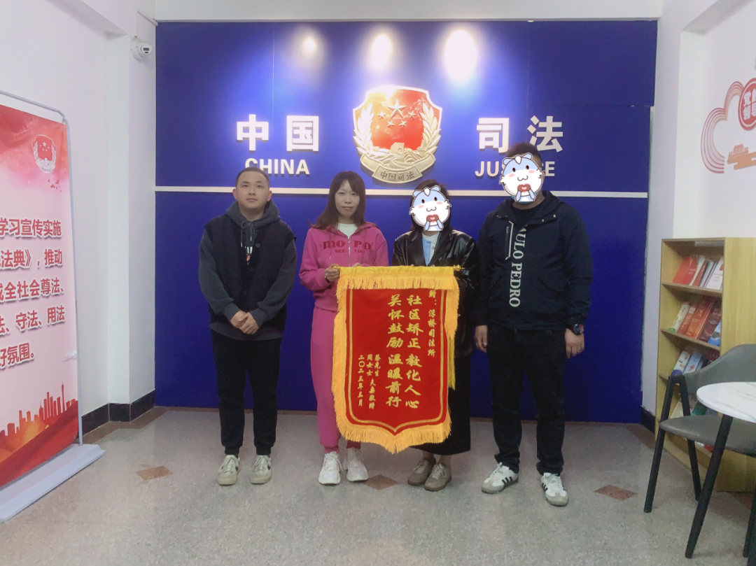 近日,社区矫正对象周某夫妻将一面印着“社区矫正 教化人心 关怀鼓励 温暖前行”的锦旗送给浮桥司法所,感谢浮桥司法所全体工作人员的悉心矫正和真情关怀。同时,浮桥司法所所长为周某夫妻二人精心准备一份暖心解矫礼包,祝福他们重启新生活、早生贵子、幸福美满。