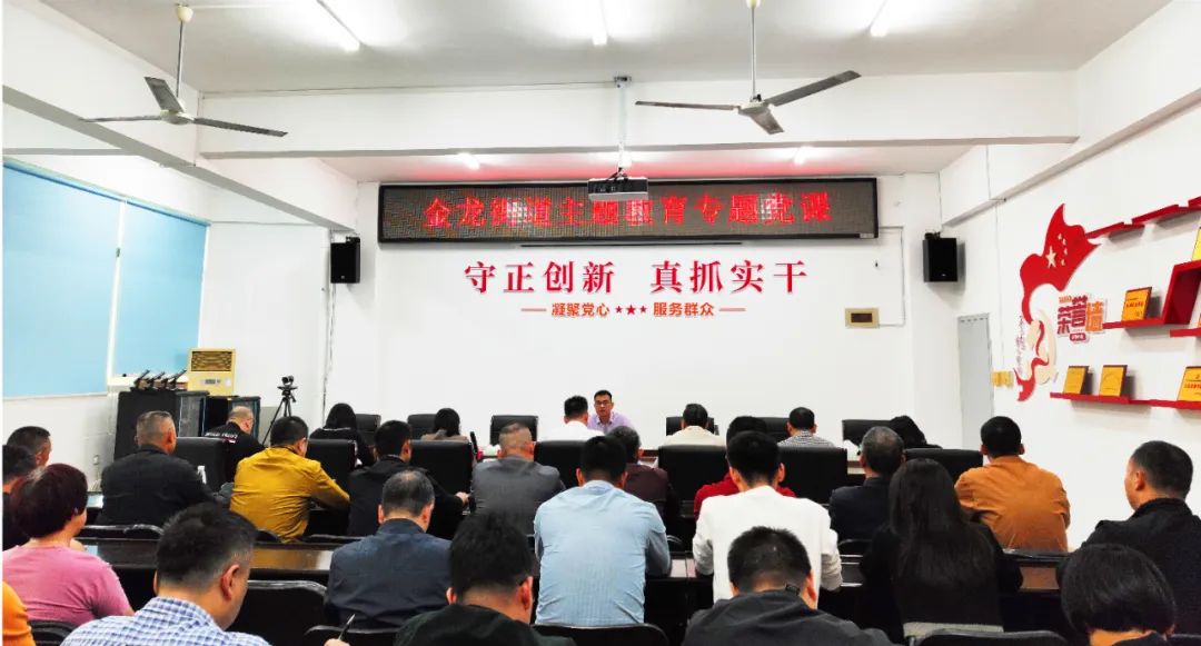课上,黄伟民带领党员干部从主题教育总要求中感悟初心使命,并结合金龙实际,从理论武装、党性修养、实干争先等方面进行深入浅出的讲解。授课内容主题鲜明、重点突出,既有理论阐述,又有案例诠释,为街居干部筑牢思想根基,激发奋进力量。