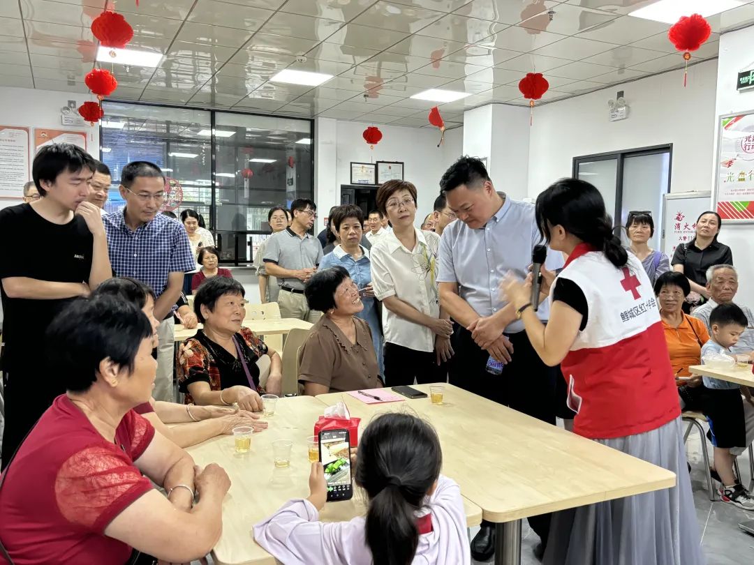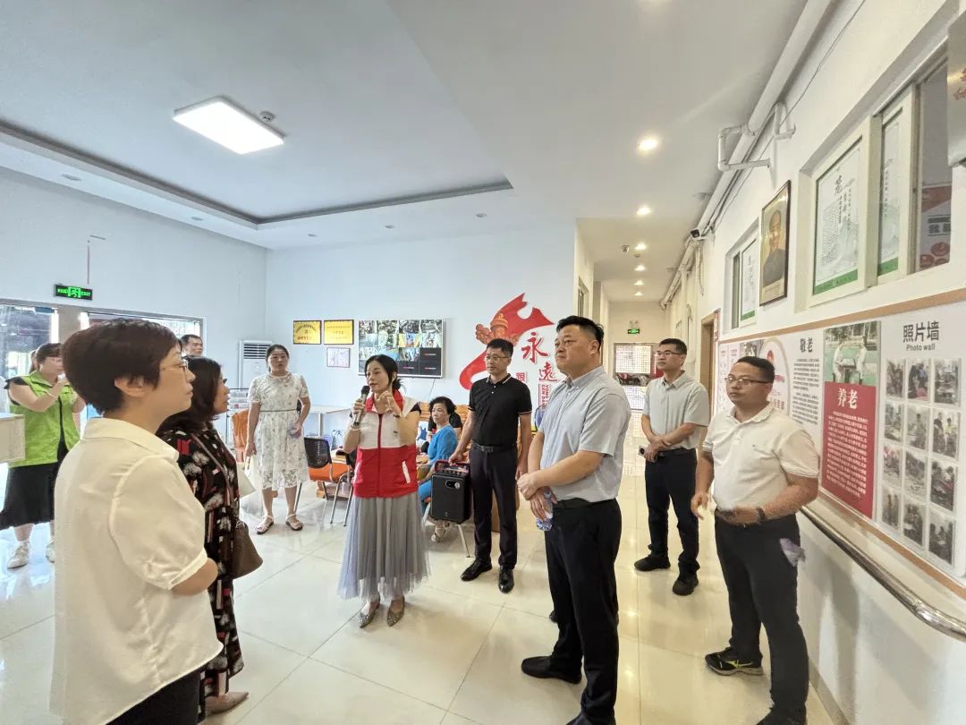 调研组一行先后参观金峰社区红十字会宣传走廊、便民服务大厅红十字服务窗口、博爱驿站、应急救护科普活动室、康复健身室、健康小屋、长者食堂等场所,了解基层红十字工作服务规范、工作落实、三级共建等情况。