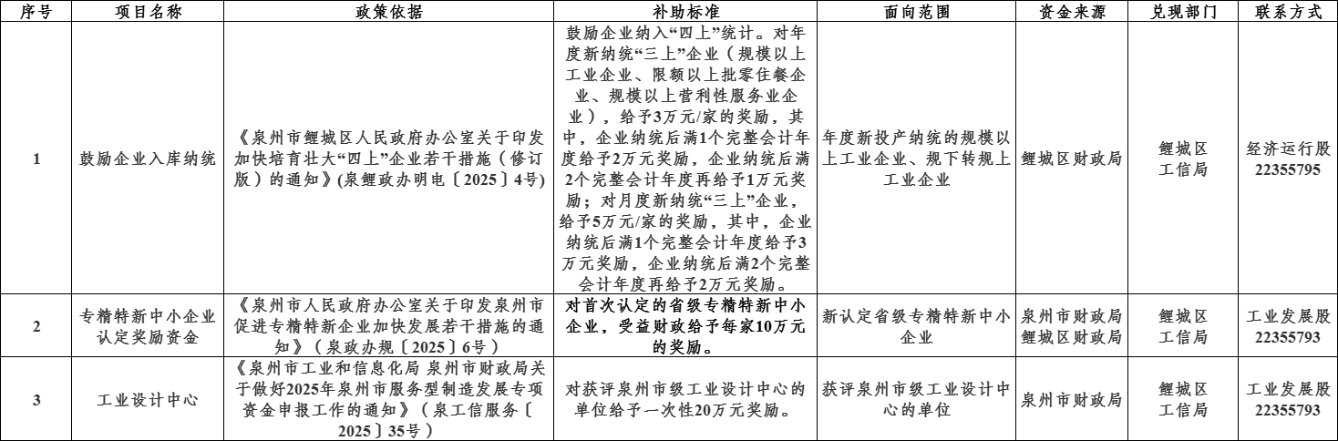 鲤城区工信局惠企政策“免申即享”项目清单(2025年12月)