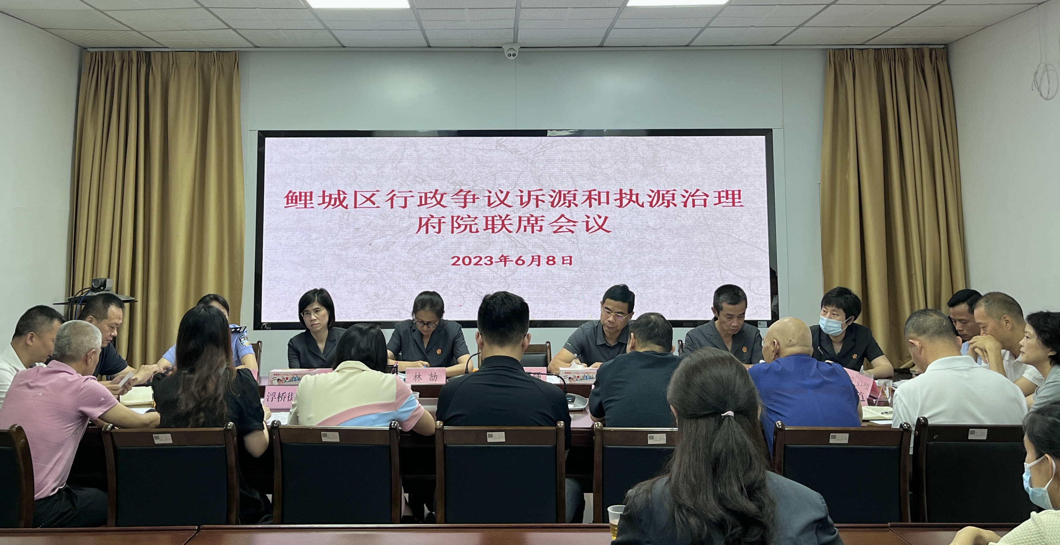 为进一步强化鲤城区司法与行政的协作配合,促进行政争议化解的衔接、沟通,凝聚行政争议实质性化解的合力,6月7日上午,鲤城区行政争议诉源和执源治理府院联席会议在司法局召开。本次会议邀请了丰泽法院、鲤城法院、鲤城公安分局、人社局、市场监管局、城管局、住建局、各街道办事处等相关领导参加。