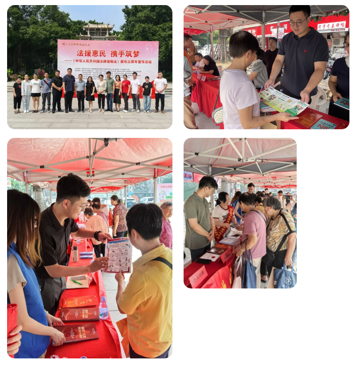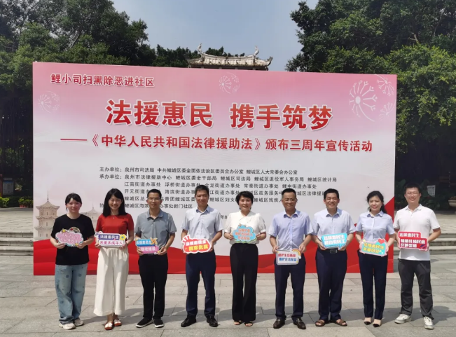 值《中华人民共和国法律援助法》颁布三周年之际,为进一步深化“法援惠民生”品牌建设工作,深入贯彻实施《中华人民共和国法律援助法》,切实提高群众法律意识、维护群众合法权益,8月27日上午,鲤城区司法局、鲤城区法律援助中心联合泉州市司法局、泉州市法律援助中心、区委老干部局、区退役军人事务局、区统计局、区总工会、团区委、区妇联、区残联等单位在芳草园开展以“法援惠民·携手筑梦”为主题的宣传活动。