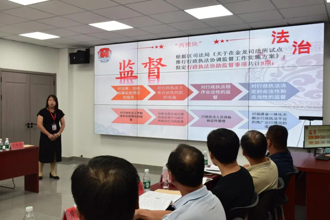 为贯彻落实《中共中央办公厅 国务院办公厅关于加强行政执法协调监督工作体系建设的意见》,在综合行政执法体制改革的背景下,鲤城区司法局紧紧抓住改革契机,选取金龙司法所在全市率先开展基层司法所协助行政执法协调监督试点工作,探索基层行政执法协调监督新路径,推进行政执法协调监督职能向基层延伸,有效打通行政执法监督“最后一公里”。
