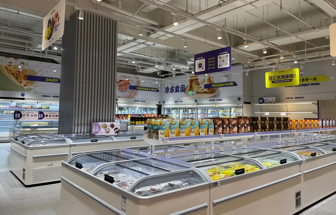 走进“百汇优淘”社区品质折扣超市,“回字形”动线设计令人耳目一新。从入口处的生鲜果蔬区,到紧邻的水产肉类区,再延伸至粮油调味、清洁用品等高频日耗品区域,整体陈列饱满、动线流畅。紧凑而高效的布局规划,精准聚焦家庭“一日三餐”与日常所需,致力让顾客在20分钟内完成一次快速、完整的采购。