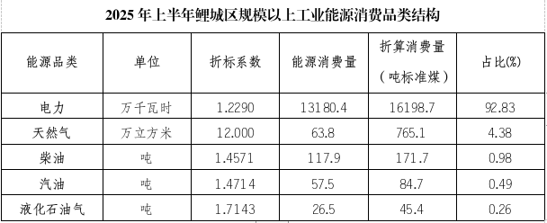 从能源消费结构看,我区能源消费品类较为集中,以电力、天然气、汽油、柴油、液化石油气为主。上半年,五品类合计折算能源消费量为17265.6吨标准煤,占全区规模以上工业综合能源消费量的98.9%。其中,规 模以上工业企业电力消费量达13180.4万千瓦时,同比下降0.1%,降幅较上季度扩大1.8个百分点。折算为标准煤后电力消费量达16198.7吨标煤,占全区模以上工业综合能源消费量的92.8%。
