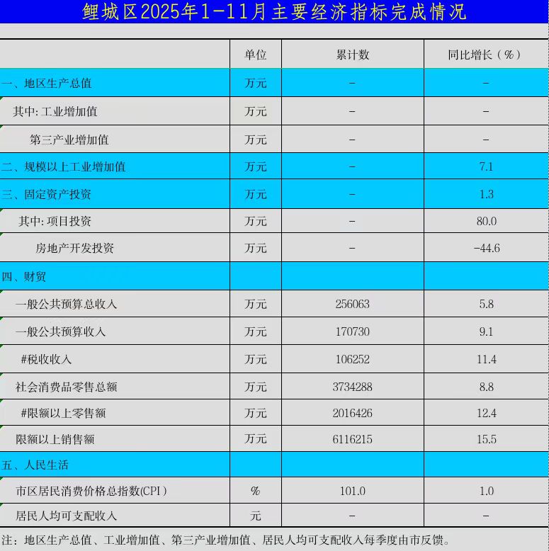 鲤城区2025年1-11月主要经济指标完成情况